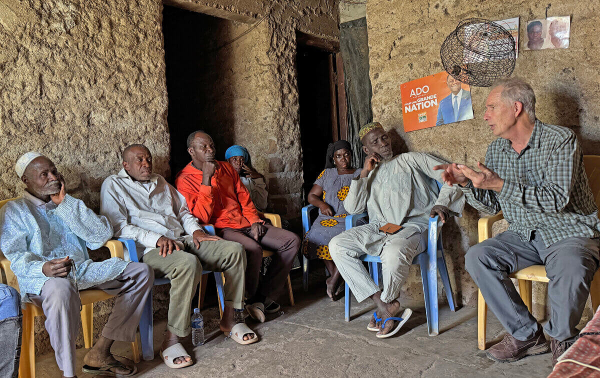 Jan’s training combined classroom sessions and hands-on fieldwork. In three villages, Jan delivered theory sessions in French, with Mme Cissé acting as interpreter where needed. These were followed by practical afternoons inspecting hives and transferring colonies from damaged traditional hives into modern Top Bar hives, introduced by Mme Cissé. These improve hygiene, ease of use and beekeeper motivation.
