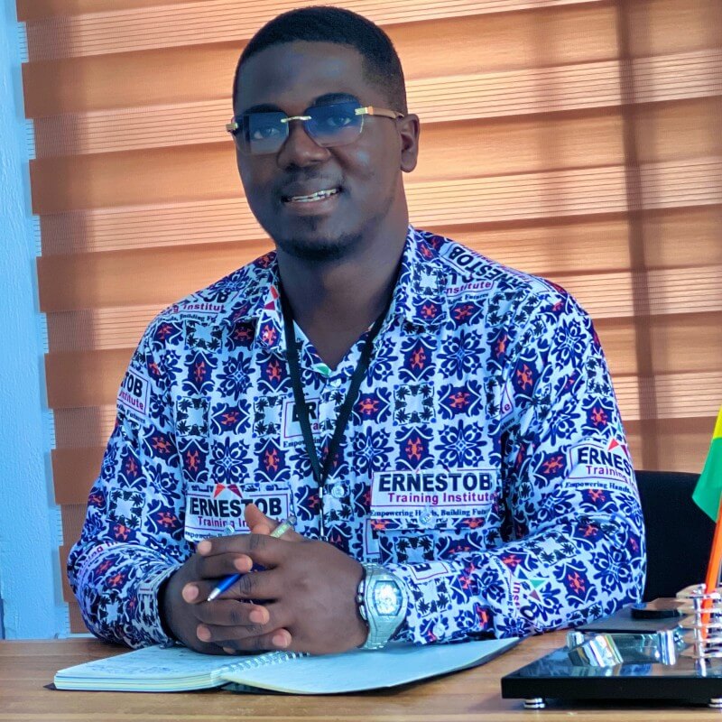 Based in Techiman, in Ghana’s Bono East Region, Ernestob Training Institute (ETI) prepares young people for the professional world. Founded in 2016 by Ernest Osei Bonsu, the institute offers training in fashion, catering, cosmetology and ICT. From the start, ETI has deliberately chosen a practical approach, combining classroom learning with hands-on assignments and internships.