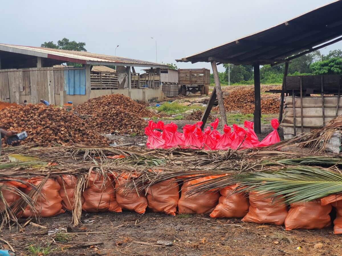 The visit allowed these insights to be tested and refined in practice, combining field visits and strategic working sessions. Together with the SAFL team, Jos visited coconut plantations in Assini, Jacqueville and Fresco. He observed dehusking and packing operations at collection centres and explored small-scale coconut oil and husk processing facilities. These field visits provided a clearer understanding of supplier relationships, quality grading practices and coordination between farmers, collectors and processing centres. They also made it possible translate earlier strategic discussions into concrete, realistic actions.