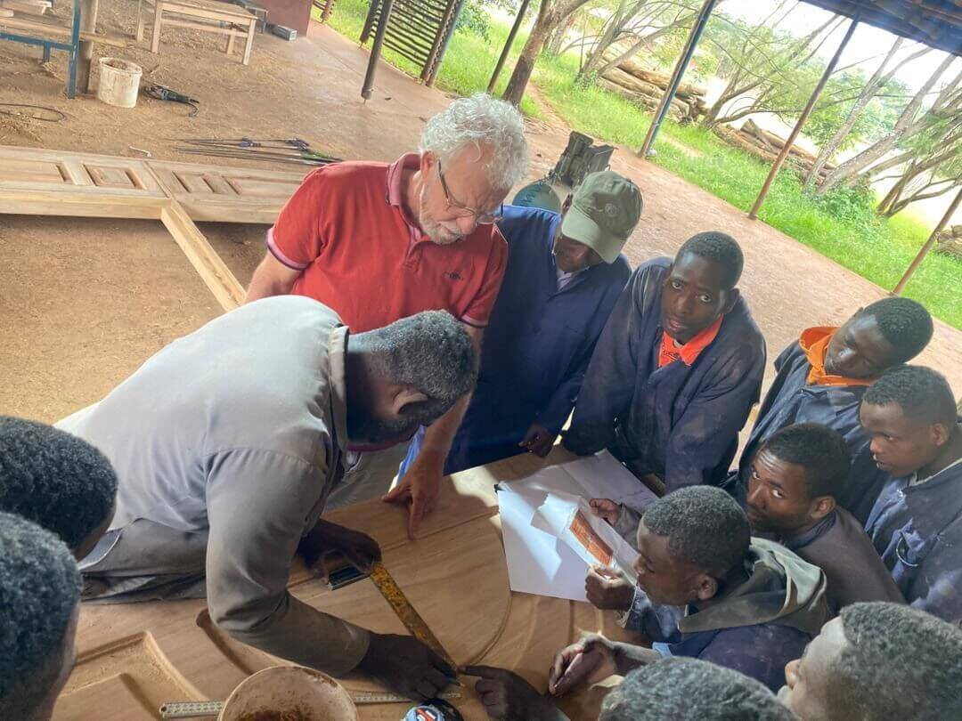 Upon arrival, Gerard was impressed by the cleanliness, structure and motivation on campus. The young trainees, he noted, “were are eager to learn and motivated to the bone”. Working alongside the trainers and students, Gerard focused on upgrading the carpentry and upholstery workshops. He inspected the existing machinery, organised repairs, and reinstalled essential safety protections. Together with the team, he reactivated an extraction system that had long been out of use and introduced more professional working practices.